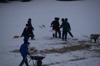 雪は様々な喧噪を掻き消し,真っ白な静寂の世界へと誘ってくれる幻想的な存在です。(豪雪に苦しむ方々のことを思うとそうも言ってはいられませんが…)しかし,その翌日には「雪かき」という厳しい現実が待ち構えています。今朝のグラウンドには雪で覆われたグラウンドを復旧するためにスコップを持ったソフトテニス部の生徒たちが見られました。しばらくはグラウンドでの活動はお預けかと思ったのも束の間,日中の暖かい日差しを受けた部分の雪はあっという間に溶けて地面が顔をのぞかせています。太陽のとてつもないパワーを目の当たりにして,なるほど『お日様』と様付けされる理由がわかった気がしました。
