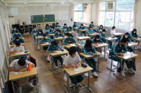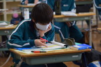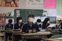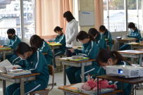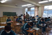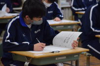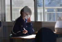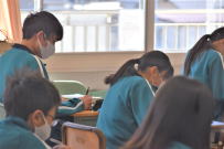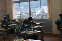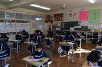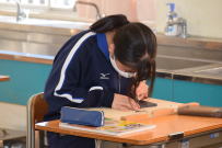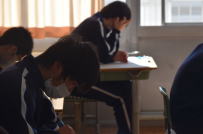 気がつけば2月もあと3日を残すのみとなりました。最近の暖かな陽気が時の流れを一気に進めてしまったように感じます。今日は1・2年生の期末テスト1日目が行われました。1年生は社会科・国語・数学・体育・美術の5教科に,2年生は理科・数学・英語・音楽・美術の5教科に取り組みました。期末テストを乗り越えれば,いよいよ新学年へのカウントダウンが始まります。ガラス越し,集中してテストに取り組む1・2年生の姿からはいつ進級しても大丈夫だという頼もしさが感じられました。