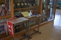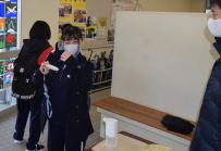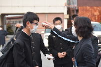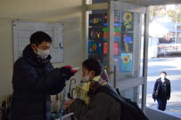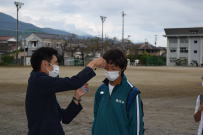 コロナウイルス感染拡大による緊急事態宣言が11都府県に拡大される中,鰍沢中の生徒玄関に3学期から新兵器が登場しました。アルコール消毒がこれまでのプッシュ式から自動噴霧型へと切り替わりました。また,朝の検温では通学中に凍てつく冬の空気を受けてきたおでこで測定しようとしても体温計が「Lo」を示してしまいます……。首元などの空気に触れていない箇所で測らないと体温が測定できない人が多く見られます。これから1年でもっとも寒さの厳しい時期を迎えます。しかし,その先にはきっと暖かい春が待っていてくれるはずです。