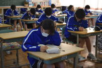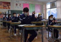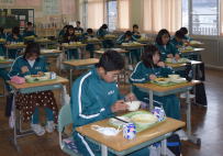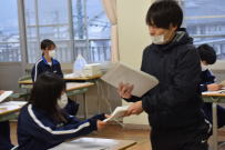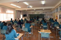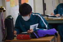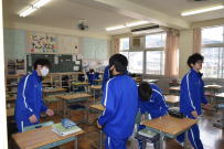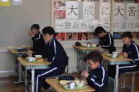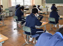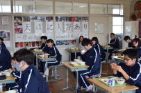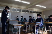 今日は公立前期入試です。本校からは13人の生徒が前期募集に挑戦しました。13人はクラスの約3分の2にあたります。すきすきになった教室はどこか寂しげです。ただ,今日の給食に関してはいつもよりたくさん盛っても良さそうです。前期入試2日目の明日には多くの3年生が教室に戻ってきます。