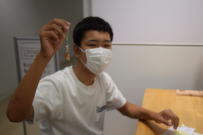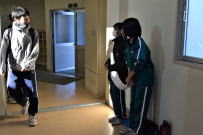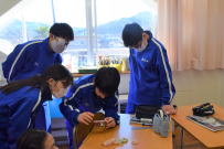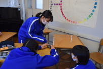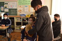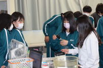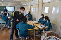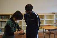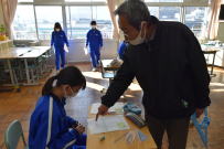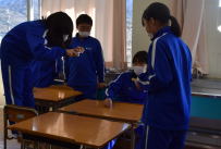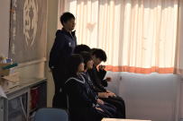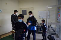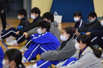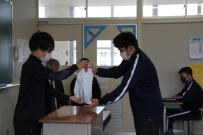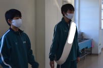 期末テストが終わり身も心も軽やかになった1・2年生。テスト直後の4時間目,2年生は保健体育の授業をしていました。その前をふと通りかかるとちょっとした違和感を感じました。ご覧の通りみんな半袖になっているではありませんか。いくらテストが終わり気持ちが軽やかになったとはいえ,2月に半袖はちょっと変です。一体どうしたのか?と思ったらエタノール・パッチテストで自分のアルコールに対する体質を調べていました。「お酒は二十歳になってから!」はしっかり守ってもらいますが,今のうちからアルコールについての知識を持つことはとても大切なことです。みなさんの健やかな成長を願っています。