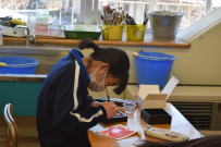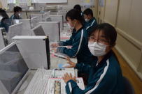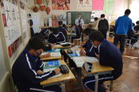 本日は3年生の美術の授業にお邪魔しました。教室内は糸がぴーんと張り詰めた様な良い緊張感に包まれていました。今,3年生は卒業制作に取り組んでいます。あまりに集中して取り組んでいるものですから,声をかけるのもはばかられ,その様子だけを写真に収めて参りました。精神を集中して1つのことに取り組む姿が大変凛々しく見え,最高学年としての風格を感じました。