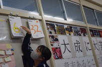 来週の今日は山梨県公立高校の前期募集1日目です。今日は入試直前の3年生の帰りの会にお邪魔しました。テスト1週間前ということでピリピリした雰囲気になっているのかな…?と思いきや,3年教室はとても良いムードです。会の中,合格第1号が担任の先生から発表されると教室は笑顔と拍手に包まれました。前期入試までの日めくりカレンダーの示す数字は『6』。体調管理を万全にして100%の力を発揮してきてほしいと思います。