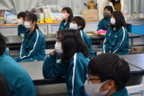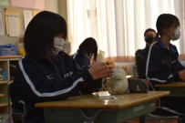 本日の6時間目,今年度最後の研究授業となる2年理科が行われました。学習内容は『大気中の水蒸気の変化』。目に見えない水蒸気に関わる問題の中を主体的に解決していく授業でした。難しい課題にも食らいついていた2年生の姿が印象的でした。