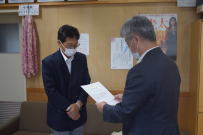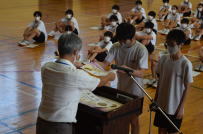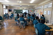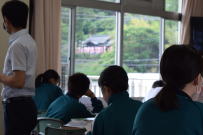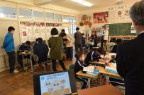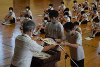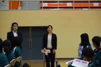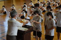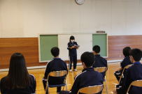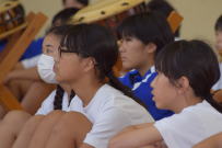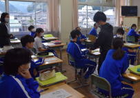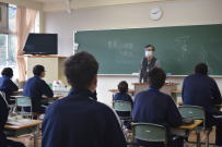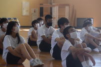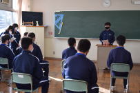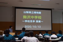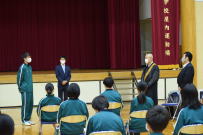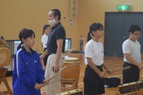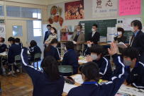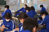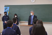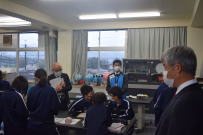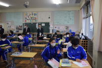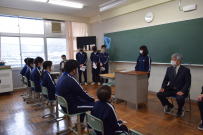 今年度も富士川町教育委員会の学校訪問が行われました。この日の午後から6名の教育委員会の方々が本校を訪れ,授業参観や学校長との面談を通して学校の様子をお伝えしました。この日の1年生の授業参観は伝統芸能「鰍沢ばやし」。突如として現れたお客さんを前にして,1年生は緊張もあったと思いますが,いつにも増して素晴らしい演奏を披露してくれました。1年生ばかりでなく,2・3年生の授業を受ける姿勢についても「しっとりとした良い雰囲気の中,よく頑張っていた」とお褒めの言葉をいただきました。鰍中の良い部分を随所に見ていただけた学校訪問となりました。