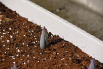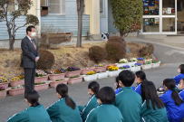 北海道・東北と沖縄を除く地域で例年2月から3月の半ば立春から春分の間に,その年に初めて吹く南寄りの強い風を春一番と言います。今日の鰍沢地区は南寄りの強風が吹き荒れる1日となりました。風は強いものの春の到来を感じる中,11月に植えたチューリップの球根のうち4つのプランターで芽が出ています。目指すは卒業式でのお披露目!このまま暖かく穏やかな日が続いてくれることを願います。