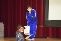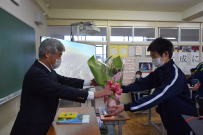 Surprise(サプライズ)は時に人を幸せな気分にさせてくれます。本日の放課後,学友会主催の全校レクが行われました……最初の10分ほどは……。3拓クイズで体育館内に散らばっていたレクの途中で,生徒が一か所に集まり,今年度末に定年退職する「校長先生に感謝を伝える会」になりました。このサプライズに校長先生はもちろんのこと,見ていた私までも胸が熱くなりました。年度末の心温まる時間に,あらためて鰍沢中の一員で良かったと実感させられました。