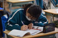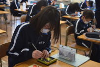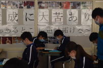 年が明けて初めてのテスト「実力確認テスト」が全学年で行われました。みなさん,冬休み中の勉強の成果は出せたでしょうか?また,新たな課題は見つかりましたか?3年生にとっては入試前,現在の自分の力を知ることができる貴重な機会でもあります。ガラス越しに見える3年生の姿はまさに真剣勝負そのもの。それぞれの進路希望が叶うことを祈っています。