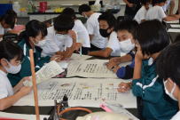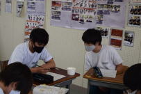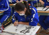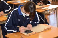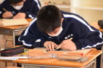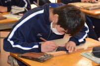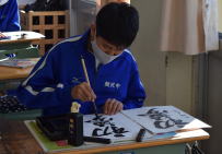 今日は1年生の国語(書写)の時間にお邪魔しました。年明け1月8日(金)に校内書き初め大会が予定されています。1年生の課題は「初夢」。慣れない行書にも果敢に挑戦する1年生。墨の香りに包まれながら硯に無心で向かう時間もなかなか良いものです。1月8日にはどんな作品が出そろうか今から楽しみです。