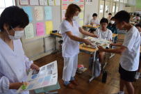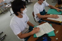 本日の6時間目,3年生の保健体育は研究授業でした。授業の題材は約2人に1人がかかると言われている「がん」について。「がん」ができる過程についての話や「今,自分にできること」について個人やグループで考えました。目に見えない程小さながん細胞が検診で見つかる程度に大きくなるまでには約10年の歳月がかかるそうです。中学生の今できることは,10年後の自分の身体のために良いことを心がけること,そして,自分の大切な人にがん検診を勧めることだと授業から学ぶことができました。