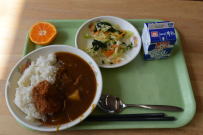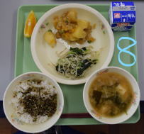 今日1月22日は,学校給食創立35年を記念して全国の小中学校で一斉にカレー給食が出された1982年のこの日を記念して「カレーライスの日」となっています。そして本日の給食のメニューは……やはり『カレーライス』でした!「給食のカレーは美味しい」と耳にしたことがあります。その理由は,大量の野菜・大量の肉・大量のスパイスを大なべで煮込んで作るので素材の味がよく染みこむことと,もう1つ,今はコロナの影響でそうはいきませんが,給食は大勢でわいわいやって食べることも多く,その雰囲気も一役かってるのではないでしょうか。みんなでわいわいしながら給食を食べられる日常を1日も早く取り戻したいものです。
