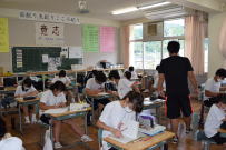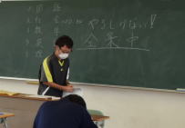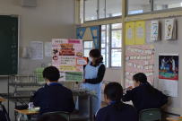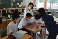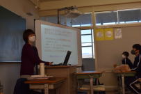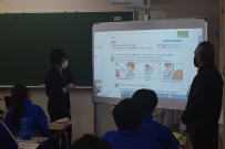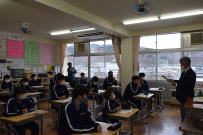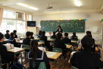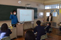 本日の6時間目,山梨大学より講師の先生をお招きして英語の研究授業を3年生で行いました。題材は昨日2年生が受けた廃棄物適正処理学習会と同じ「環境問題」について。フォトジャーナリストを目指すTinaが自分のウェブサイトを開設し世界の中学生と環境問題について意見交換をするといった内容の本文から,環境問題について自分にもできることは何かを考えるものでした。エコバッグを使う,水を出しっぱなしにしない,植樹をする……など色んな意見が活発に出された良い授業でした。次回はこれらのことを簡単な英文で表現するとのこと。みなさん,頑張ってください!