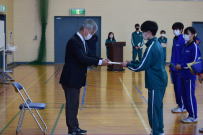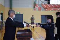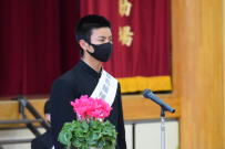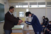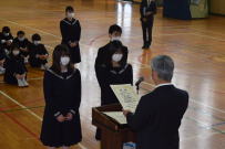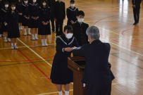 今年度は新型コロナウイルスに振り回された1年になりました。今まで通りにいかないことが頻繁に起こり,「新しい生活様式」という言葉が学校現場を席巻しました。この辺りの中学生が制服を着る機会が激減する,という現象が起きたのもコロナ禍ならではの「更衣室が密になる」という事情からです。今年度,鰍中生も制服に袖を通した回数は数えるほどしかありませんでした。今日は,今週の木曜日に予定されている第74回卒業式の前に一度,制服を着る機会をつくっておこうということで,制服登校をしてもらい,朝の集会で表彰を行いました。久しぶりのみなさんの制服姿はいつもより随分大人っぽく見えました。卒業式はいよいよ3日後です。全校が心を一つにして最高の卒業式をつくりあげましょう。
