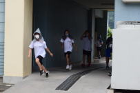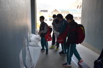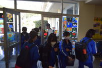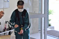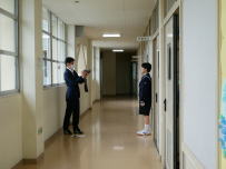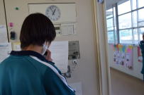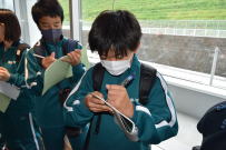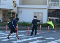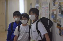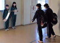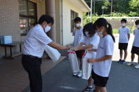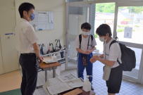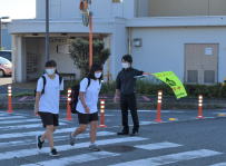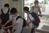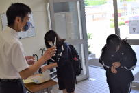 朝の生徒玄関には生徒と先生のやり取りがあります。「今日の体温はどうでしたか?」,「はい,平熱です。」,「具合の悪いところはありませんか?」,「大丈夫です!」,などの健康管理上必要な会話の他にも,昨日の学校の出来事だったり世間話などができる貴重な時間です。集団登校の小学生の列も玄関前を通るので,「おはようございます!」と声をかけることもできます。お隣の鰍小生を覚えることができるのも有意義なことです。週の最終金曜日ともなれば,疲れがたまっている人も多いと思いますが,「あと1日だから頑張るぞ!」という表情を今朝もたくさん見ることができました。