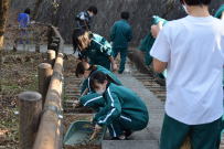 本日午後,2年ぶりの大法師清掃活動が行われました。昨年は突然の臨時休業で行うことができませんでしたので,現1・2年生にとって初めての行事となります。最高のお天気の下,汗をかきながら,みんなで大法師山へ続く遊歩道をきれいにしました。この様子は3月16日(火)①朝6時55分から,②朝7時55分からNHK第1で放映される予定です。どうぞご覧ください。
