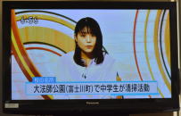 昨日の大法師清掃活動の様子が今朝のNHKのニュースの中で放映されました。毎日見慣れた鰍中生のはずなのに,テレビ画面越しに見るととても新鮮に思えるから不思議です。ニュースでは鰍中生が清掃を頑張っている様子やインタビューされている様子が2分余り放映されました。鰍中が長年続けてきた取組を広く知ってもらえる良い機会となりました。