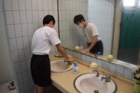 「毎日15分の清掃活動に精一杯全力で取り組もう!」と学友会本部が企画した「全力夢中清掃」が今週と来週の2週間に渡って行われています。この2週間の清掃時間帯は,一言もしゃべることなく,何をしたら良いのかを自分で考え,時間いっぱい掃除を頑張り学校をきれいにしようという取組です。何か1つのことに黙々と取り組むことによって集中力も鍛えられ,一石二鳥の効果が得られそうです。「し~ん」と静まりかえった清掃の時間も新鮮でなかなか良いものです。