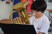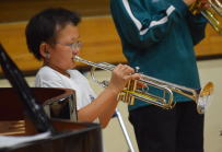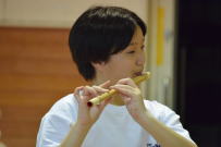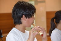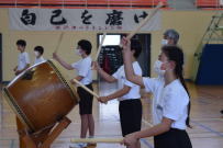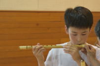 鰍沢ばやしの練習風景をカメラに収めようとファインダーをのぞくと,初夏特有の蒸し蒸しとした暑さの中にあっても,目を輝かせながら太鼓・笛・鉦の演奏に集中して取り組む1年生の姿が目に入ってきます。その一生懸命さを目の当たりにすると,シャッターを次々に切ってしまって,その手がなかなか止まりません。つくづくデジカメの時代で良かったと,昔のフィルム式のカメラを知る世代は思ってしまいます。