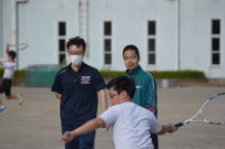 先週の部活動見学を経て,今週の火曜日からは1年生の部活動体験が始まっています。写真は男子ソフトテニス部の様子です。約2ヶ月遅れの始動となった部活動。待たされた分だけ1年生の表情は喜びに満ちあふれているように感じます。また,1年生に手ほどきをする2年生の姿もすっかり先輩らしくなりました。昨日は,この春,本校を卒業した先輩2人がたまたま通りかかり,母校の先生方との四方山話に花を咲かせていました。「高校生活は楽しい」の一言が何よりの近況報告です。卒業生のみなさんの今後の活躍をお祈りしています。