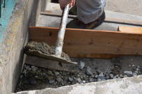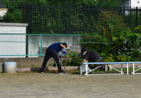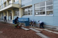 只今,学校東棟裏の花壇へ通ずる階段を制作中です。セメントに小石と砂を混ぜ,よく練ってコンクリートを作るところから始めた手作りの階段です。完成間近の手作りの階段。そのクオリティーの高さにびっくりです!今年の夏は東棟裏の花壇へ,ついつい足が向きそうです。