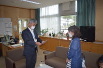 富士川町では毎月,広報誌を発行しています。その名も「広報ふじかわ」。本日,富士川町役場政策秘書課の方が本校を訪れ,広報ふじかわ8月号の取材を行いました。先日の富士川町給食センター竣工式に参加した学友会副会長さんに,8月から稼働する富士川町給食センターに期待することや,これまでお世話になった鰍沢地区の給食,食育について,色んな質問が投げかけられました。広報ふじかわ8月号の発行は8月下旬の予定です。どんな記事になるのか楽しみです。