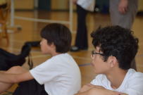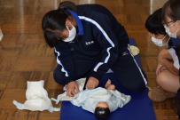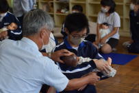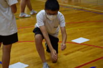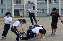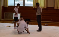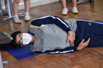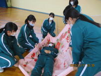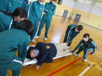 本日の2年生の保健体育の授業では,「どうすると少ない人数で人を運べるか」について学びました。私たちは「目の前に倒れている人を安全な場所に緊急搬送しなくてはならない場面」にそうそう出くわすことはありません。ですが,「備えあれば憂いなし」。もしもの時のための学びはとても大切です。授業では毛布で人を運ぼうとすると想像以上に毛布がのびてしまい,担架のありがたさに改めて気づくことができました。