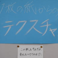 土日の大会が終わり,本日のこのコーナーもちょっとリラックスした内容をお送りします。~元は同じたった1枚の紙からこれほど様々な作品ができるとは……。人の想像力って本当にそれぞれ違っていて,不思議な感じがします。 美術室前の廊下に,各学年が美術の授業で取り組んだテクスチャが掲示されています。テクスチャとは,英語の「texture」に由来する言葉で,直訳すると「素材感」,「材質感」といった意味になります。学校ではこのように発想の違う者同士が日常生活を共にしています。時に価値観のすれ違いが起きても何の不思議もないことだと思います。大切なことは,自分とは違う価値観に対して寛容な心を持てるかどうかだと,廊下の掲示物を見てふと思いました。