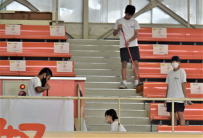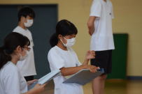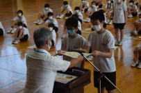 待ちに待った大会の日がやってきました。新型コロナウイルス感染拡大防止対策のため,春先から部活動の大会という大会はすべて中止となりました。一時は夏の大会も開催することができないのではないか…という不安もある中,多くの人たちの支えによって大会の日を迎えることができました。1席ごとに間隔が空けられた観客席。拍手のみの応援。久しぶりに大会を迎える緊張感と,いつもとは違う雰囲気の中で,選手たちは戸惑いを感じる場面も多かったでしょう。そんな中でも会場に集ったすべての選手が全力を尽くし,中学生らしい爽やかな戦いを繰り広げました。そんな中学生の姿に元気と勇気をもらうと同時に,スポーツの素晴らしさを改めて感じることができた1日となりました。