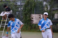 この日は朝から富士川町周辺は雨…。開催が危ぶまれた峡南地区総体ソフトテニス団体戦は,中断をはさみながらも男女とも無事,決勝戦まで行うことができました。峡南地区でお互いに切磋琢磨してきたチーム同士の激突は,どの試合も選手の一生懸命さを感じる熱く見応えのあるものとなりました。女子は身延中・六郷中を撃破してグループリーグを勝ち上がり,見事3位入賞を果たしました。男子は,南部中,六郷中を破って勝ち上がった決勝戦の相手は,県の上位に君臨する増穂中学校。その強敵相手に1ペアが勝利する健闘を見せ,結果は準優勝。男女とも春先からのブランクを見事克服して結果を出すことができました。雨の中,応援に来てくださった保護者の方々に勝利を届けることができました。この地区総体を弾みにして,次は県大会の舞台で鰍中旋風をおこしましょう。
