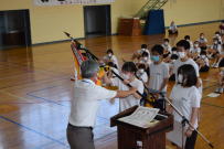 今日は第1回学校評議員会がありました。いつも学校評議員の方々には熱い応援をしていただき,感謝の気持ちでいっぱいです。学校勤めをしていると,自分の学校が世間からどのような目で見られているのかに疎くなりがちです。それだけに学校評議員の方々に学校へ来ていただき,お話しする機会を持てることはとても尊いことです。本日は鰍沢ばやしの練習も行われました。やる気あふれる1年生たち。「覚えが早い」と保存会の方々が感心していました。