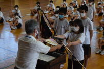今日の鰍沢ばやしの練習では,鰍沢ばやし保存会の方々が模範演奏をしてくださいました。たった4人で奏でているとは思えない程,力強い演奏に思わず時を忘れて聞き入ってしまいました。そして,その演奏を見つめる生徒たちのまなざしは,とても純粋なきれいな目です。全12回の練習のうち,今日で8回目の練習が終わり,残すところ4回となりました。2020年の鰍中1年生が奏でる鰍沢ばやし。どんなおはやしになるのか乞うご期待です。