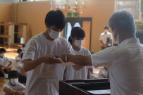 新型コロナウイルスにより,私たちの生活は一変しました。これからしばらくの間は「新しい生活様式」を意識した生活をすることになりそうです。「朝の生徒玄関」という1コマを切り取ってみても,そこには「新しい生活様式」の一端が垣間見えます。玄関に並んだ消毒液。毎朝,検温結果を尋ねる先生。まだ朝練習も始まっていないのにジャージ登校する生徒(更衣室の密を防ぐための措置)。1ヶ月先,果たして私たちはこの「新しい生活様式」に慣れているのでしょうか?先の見えない状況はしばらく続きそうですが,『この「新しい生活様式」の中にあって,生徒たちの安全を確保した上で,最大限の経験をさせてあげたい。』そんな思いを大切にしながら,今後の学校生活について考えていきたいです。