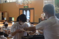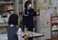 本来ならば楽しいはずの給食の時間ですが,今は密を避けなくてはならない状況下。前向き給食の実施や給食中のおしゃべりの自粛など,楽しい給食には,まだまだほど遠い感じがします。今日1日のみなさんの生活を先生たちで振り返り,改善すべき点はなかったかをしっかり検証して,また明日からの学校生活にいかしていきたいと思います。