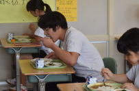 鰍沢中の給食がセンター式になってから,早4カ月の月日が経とうとしています。センター化に伴い1日に作る食数は裕に千食を超えるようになりましたが,相変わらずおいしい給食をいただいています。ありがたいことです。本日は給食センターより栄養士の先生がお見えになり「大塚人参」についてのお話をしてくださいました。また,皆さんの食器の片づけ方について「毎日,きちんと片付けてくれてうれしい」とおっしゃってくださりました。みなさんのちょっとした気遣い・心遣いがセンターの方々を幸せな気持ちにしているのですね。これからも感謝の気持ちを持って毎日の給食を「いただきます!」