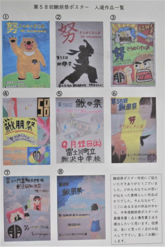 本日より11月27日の投票日までの学友会役員選挙戦が始まりました。校舎内には各候補のポスターが出そろいました。「鰍沢中をより良い学校にしたい。」と考え,立候補してくれた候補者に心から敬意を表します。今回の選挙に立候補したのは5人で,期間中,どの候補者も同じ回数だけ選挙運動ができるようにあらかじめ割り振りがされています。初日の今日は3人の候補者が呼びかけを行っていました。それぞれの候補の良いところをアピールして,清く熱い選挙戦となることを期待しています。