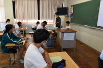 今日は2年生の英語と数学(スモールクラス)にお邪魔しました。英語の授業は昔の授業と比べてとにかく英語が使われることが多い!先生の問いかけも英語が中心に行われます。それに食らいつくように頑張っている姿が印象的でした。数学の授業では,難易度の高い証明問題に取り組んでいました。感心したのは時間いっぱい,教室内の誰もがわかろうと努力をしていたことです。学習をするうえで教室のムードはとても大切です。「勉強は団体戦」。これからもみんなで充実した時間を過ごしていきましょう。