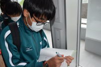本日は1年生が登校しました。1年生は,4月8日に登校して以来,実に41日ぶりの登校となりました。1年生は,入学後,間もなく臨時休業に入ってしまったため,身分証明書用の写真も撮れておらず,今日は,それ用の写真を撮ったり,図書室についてのオリエンテーションを受けたりしました。中学生の身分証明書用を手にすると,ちょっと大人になった気持ちがするものです。もうしばらくするとみなさんのもとに身分証明書が渡されます。どんな証明書になるのか,楽しみですね。