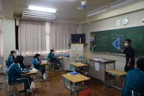 今年度,鰍沢中学校では,全学年の数学の授業で各学年を2つに分けたスモールクラスによる授業を行っています。今日は2年生の数学の授業の様子をのぞいてみました。2年生は教室と第1学習室の2カ所に分かれて授業をしています。「密」を防ぐことができるのはもちろん,今までよりも生徒一人ひとりの様子を把握しやすくなりました。今年度,