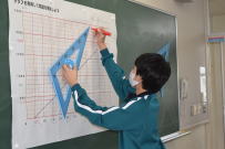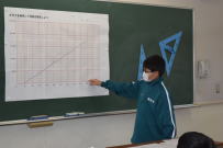 本日は校内研究会の2年生数学の授業の様子をお伝えします。数学の世界においてグラフはとても便利なものです。グラフと会話できるようになるとグラフがたくさんのヒントを与えてくれます。本日の数学の授業では,グラフとの対話の仕方を身近な問題を通して体験することができました。グラフはみなさんの味方です。これからもおおいに対話を楽しんでほしいと思います。