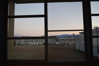 新型コロナウイルス感染対策として重要なことの1つに換気があります。これまで鰍沢中学校の窓の多くには網戸が取り付けられていませんでした。換気のために窓を開け放っておくと,しばしば優に5cmは超えるスズメバチが校舎内に侵入し,ハラハラさせられたこともありました。先日の土・日,コロナ対策の一環として鰍沢中学校の多くの窓に網戸が取り付けられました。これによりコロナ対策の換気がスムーズに行われるのに加えて,来年度以降はスズメバチの恐怖から逃れられると思うととてもありがたいことです。鰍中の校舎から網戸越しに見る今朝の景色はとても美しかったです。