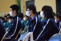 今年の3年生を送る会はコロナウイルスの影響を受け例年とは内容を変えざるを得ません。いつもだったらできたこと,例えば3年生との思い出づくりとなる全校レクは密接・密集がネックとなり今回は断念せざるを得ません。そんな寂しい面を何とか払拭できるような,それに代わる何かができないかと1・2年生が知恵を絞って,3年生に応援を贈ることにしました。全員で大きな声を出す応援はできないものの,心の中でこれからの3年生の幸せを願います。本番を間近にして団員の練習にも熱が入ります。