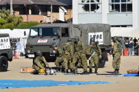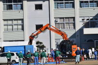 山梨県では,平成7年度から地震に対する総合的な訓練を実施しています。そして今年度の地震防災訓練が本日,富士川町鰍沢小中学校を会場に行われました。朝から上空にはヘリコプターやドローンが飛び,山梨県警警備隊・機動隊・自衛隊・消防士の方々をはじめ多くの方々が関わる多岐にわたる訓練が行われました。「いつ起きてもおかしくない」と言われ続けながらも何年もの時間が経過した大地震。いつしか私たちの防災への意識は薄くなりつつありますが,このような大規模な訓練を間近で見て,改めて防災に対して真剣に考えることの必要性を感じました。