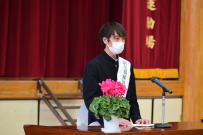 第74回卒業式が挙行されました。今年度は「前例のない」1年となりました。我慢しなくてはならないこと,制限されることが多々あり,卒業生からしたら,「なぜ自分たちが中学3年生の年がこんな年にあたってしまったのか?」と,嘆きたくなることもあったでしょう。しかし,今日の卒業生の巣立ちを見て,この1年だったからこそ得ることができたものもたくさんあったのだと気づかされました。このような素敵な卒業式に立ち会えたことに心から感謝したいと思います。