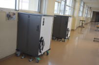 春先の新型コロナウイルスによる臨時休業は,学校の遠隔授業の必要性を知らしめました。現在GIGAスクール構想がコロナ禍の影響で前倒しで進んでいます。GIGAスクール構想とは,義務教育を受ける児童生徒のために,1人1台の学習者用PCと高速ネットワーク環境などを整備する計画のことを言います。鰍沢中でも2学期に入り,校内通信システム整備工事が着々と進行しています。本日はタブレットの充電保管庫の設置工事が放課後行われました。来春には鰍中の多くの場所でタブレット学習が可能になることでしょう。