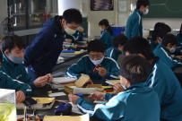 12月8日にお伝えした3年生の卒業制作の続報です。「ものごとが順調に進むこと」を「一路順風」と言います。3年生の卒業制作はまさにその言葉がぴったりの進捗状況です。昨年同様,できあがりは楽しみですが3年生が巣立っていくのは寂しいような…複雑な気持ちになります。3年生が鰍沢中学校に登校するのも今日を入れて残り21日です。