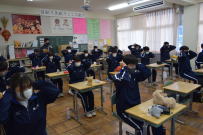今日も穏やかな日射しが降りそそぐ小春日和となりました。本日は3年生のアルバム写真撮影が行われました。クラスの集合写真の撮影場所に選ばれたのは3階ベランダ。以前なら地上でカメラを構える人に向かって「はいっチーズ」といった感じでしたが,今どきの写真撮影はドローンを跳ばして上空からばっちり3年生の凜々しい姿を撮影します。どんな写真になるのかは卒業アルバムが完成するまでのお楽しみです。