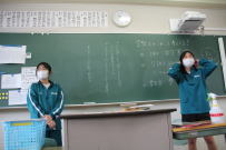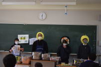 健康安全委員会の1・2年生が企画した「このメニューは誰でしょう?」が楽しいです。3年生一人ひとりの魅力を給食のメニューに例えたクイズを校内放送を通して各教室に出題するという心温まる企画です。本日出題されたメニューは「フルーツポンチ・長ネギスープ・中華丼・きな粉揚げパン・スタミナ丼」とどれも魅力的なメニューでした。3年教室にはたくさんの笑顔が見られました。